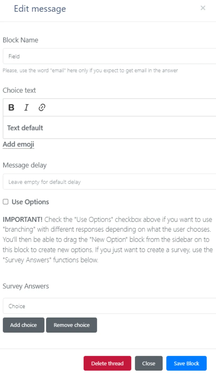This allow you to ask a multiple choice question, but they continue down the same path no matter what answer they choose.